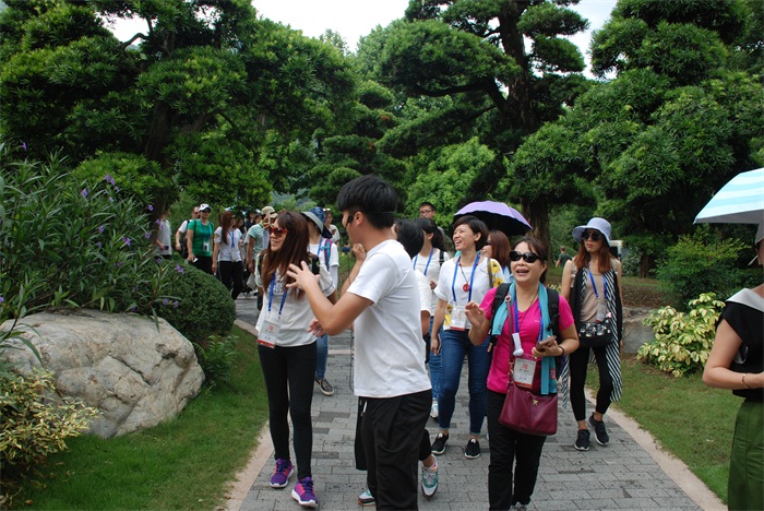 交流團(tuán)由羅漢松林進(jìn)入,林內(nèi)的羅漢松造美奇特,樹姿高雅,蒼勁挺拔,贏得交流團(tuán)交口稱贊,讓大家驚呼“這個(gè)價(jià)值很高吧”。隨后進(jìn)入紅楠嶺,講解員解說道:“每個(gè)城市都有它的市樹,香港是紫荊樹,溫州是榕樹,現(xiàn)在大家看到的紅楠是永嘉縣樹,它可以吸收土壤中的重金屬。按照游覽路線,我們進(jìn)入了鐵皮石斛棚,棚內(nèi)種植著26種鐵皮石斛,其較高的藥用價(jià)值及食用價(jià)值引起了是香港青年們的關(guān)注——鐵皮石斛可以藥用,也可以煲湯,它全身都可以吃,莖可以榨汁,花和葉子可以泡茶,位列九大仙草之首。