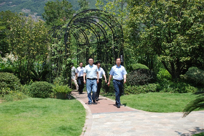談話中,考察團一行來到了梅園的觀景臺,俯瞰梅園,無限風光盡收眼底。溫州氣候溫暖,每逢正月,梅花便已悄然綻放,引來游客絡繹不絕。