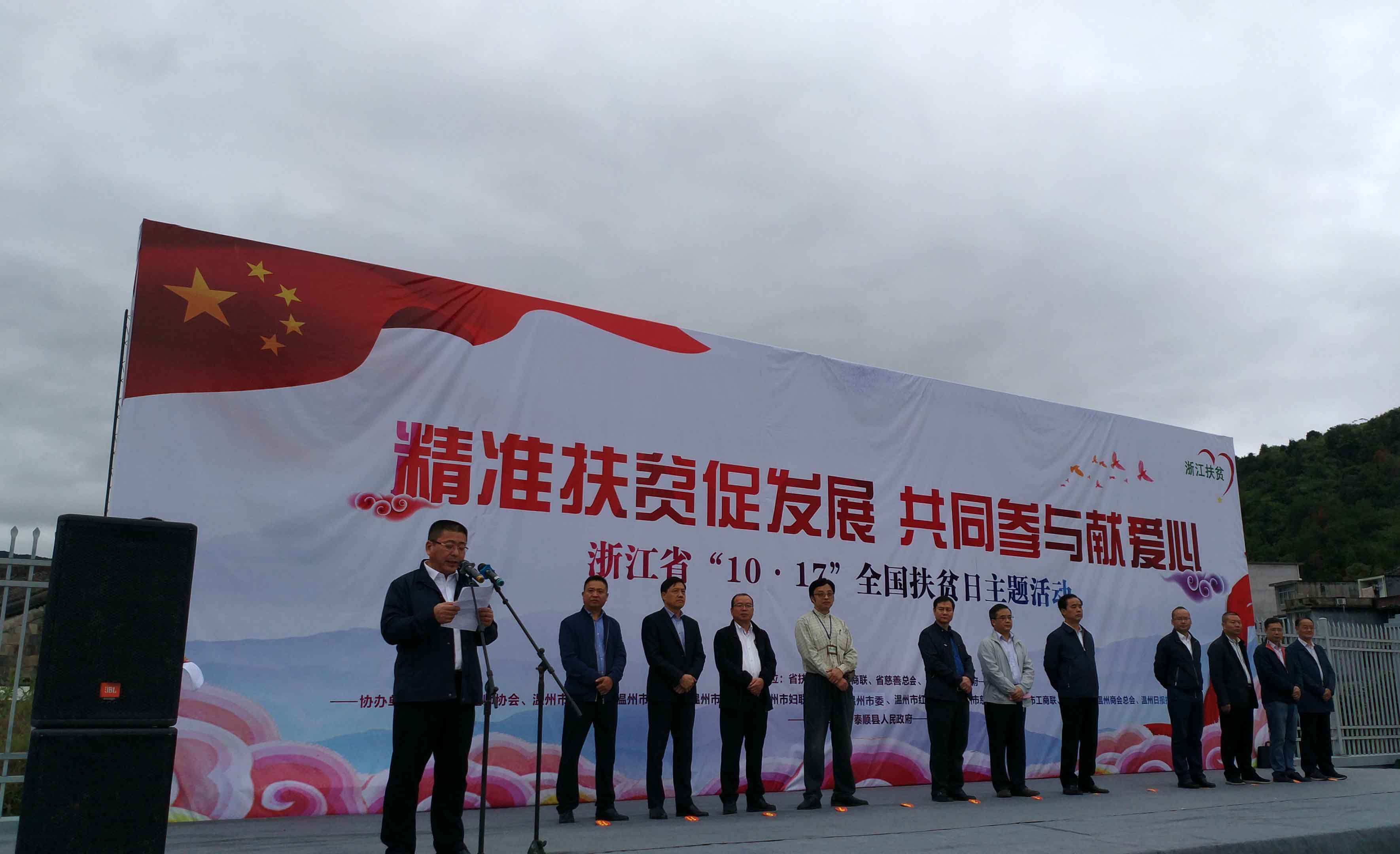 10月17日是全國第四個“扶貧日”,由浙江省扶貧辦、浙江省工商聯(lián)、浙江省慈善總會、溫州市人民政府主辦,浙江省醫(yī)師協(xié)會、溫州市扶貧辦、溫州市紅十字會、溫州市慈善總會、溫州市工商聯(lián)、溫州日報報業(yè)集團(tuán)等單位協(xié)辦,泰順縣人民政府承辦的“精準(zhǔn)扶貧促發(fā)展,共同參與獻(xiàn)愛心-浙江省‘10.17’全國扶貧日主題活動”于10月17日上午在泰順縣雅陽鎮(zhèn)舉行。