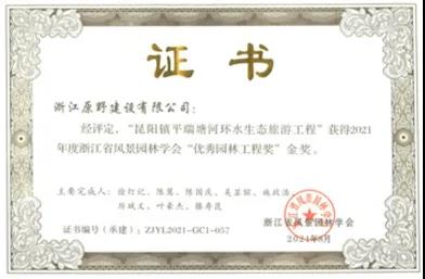 2022-01-25日前,浙江原野建設(shè)有限公司收到浙江省風(fēng)景園林學(xué)會頒發(fā)的優(yōu)秀園林工程獎證書。